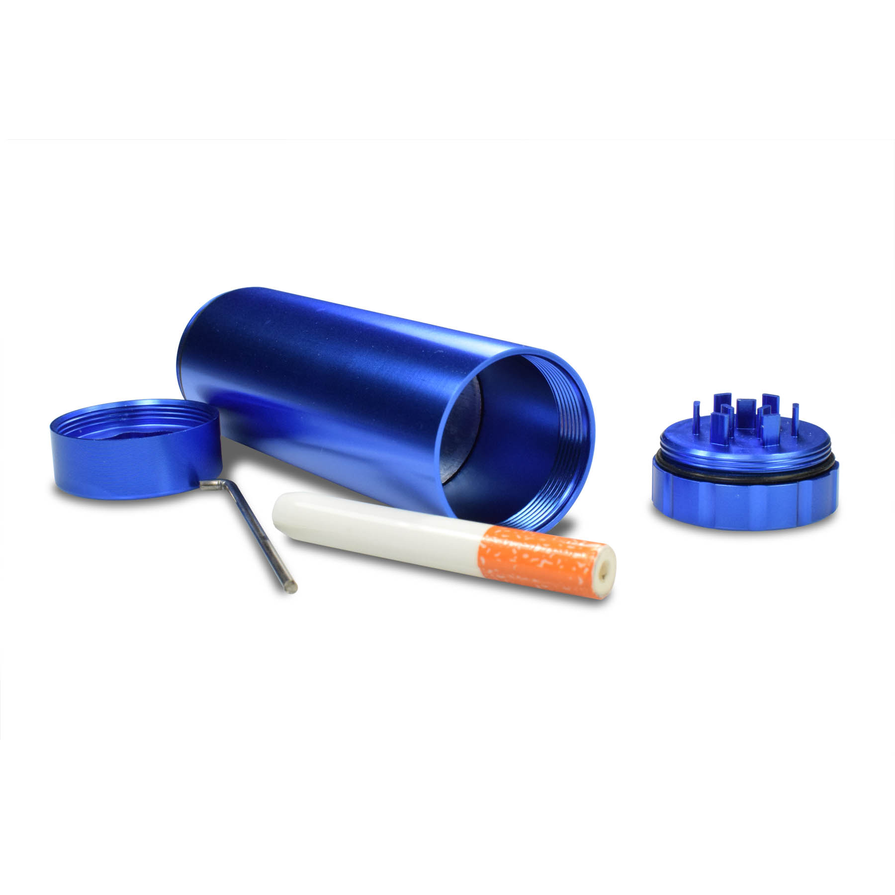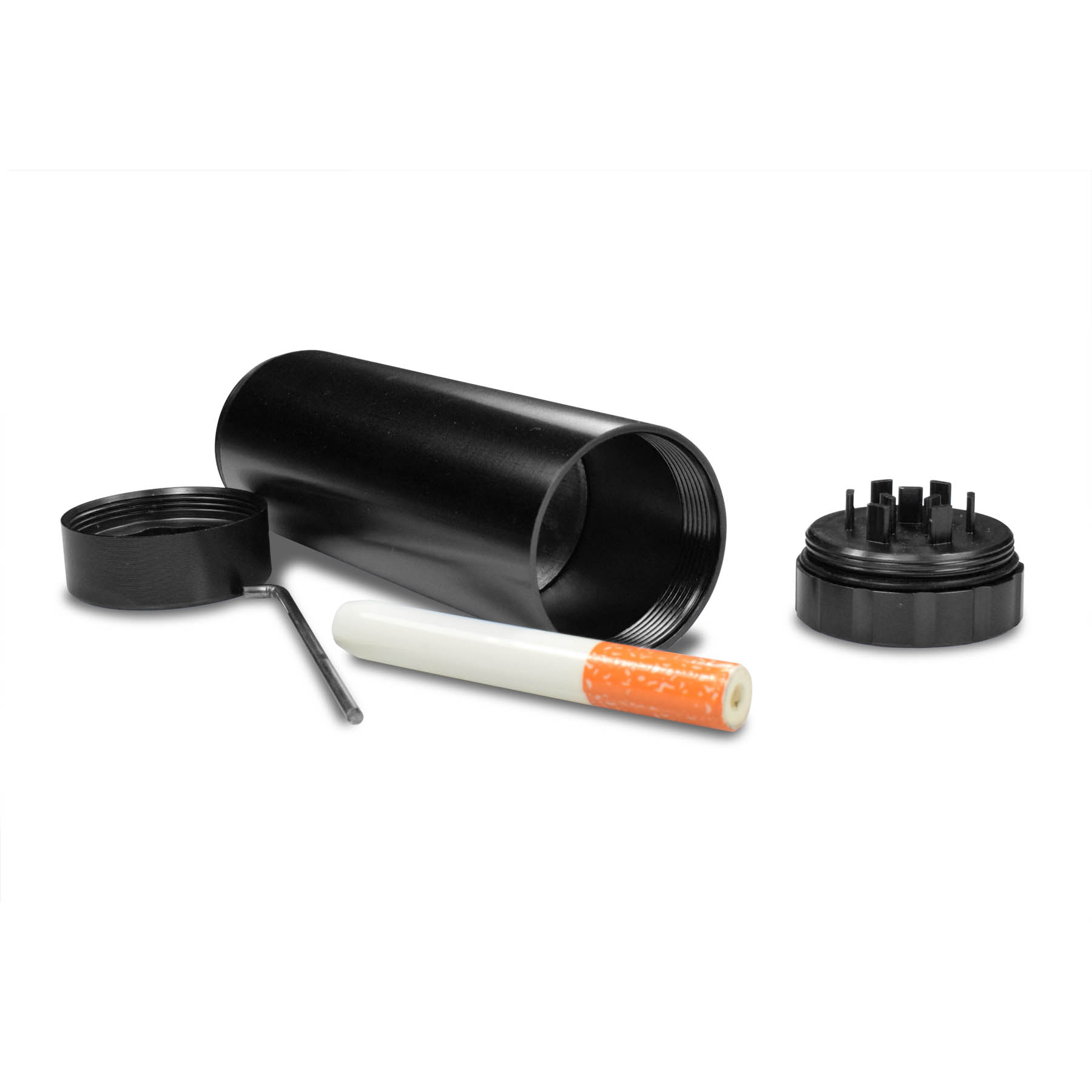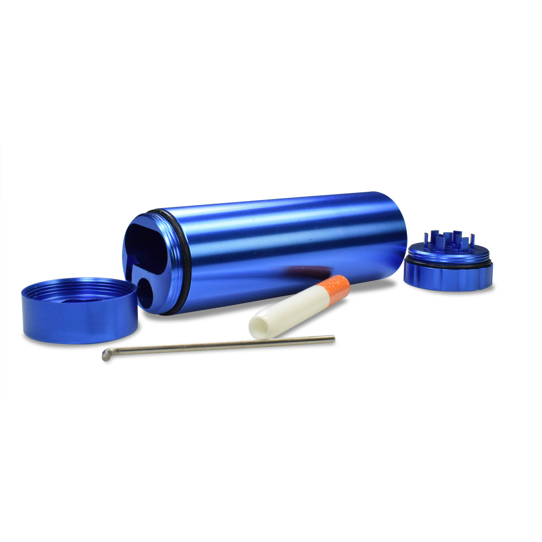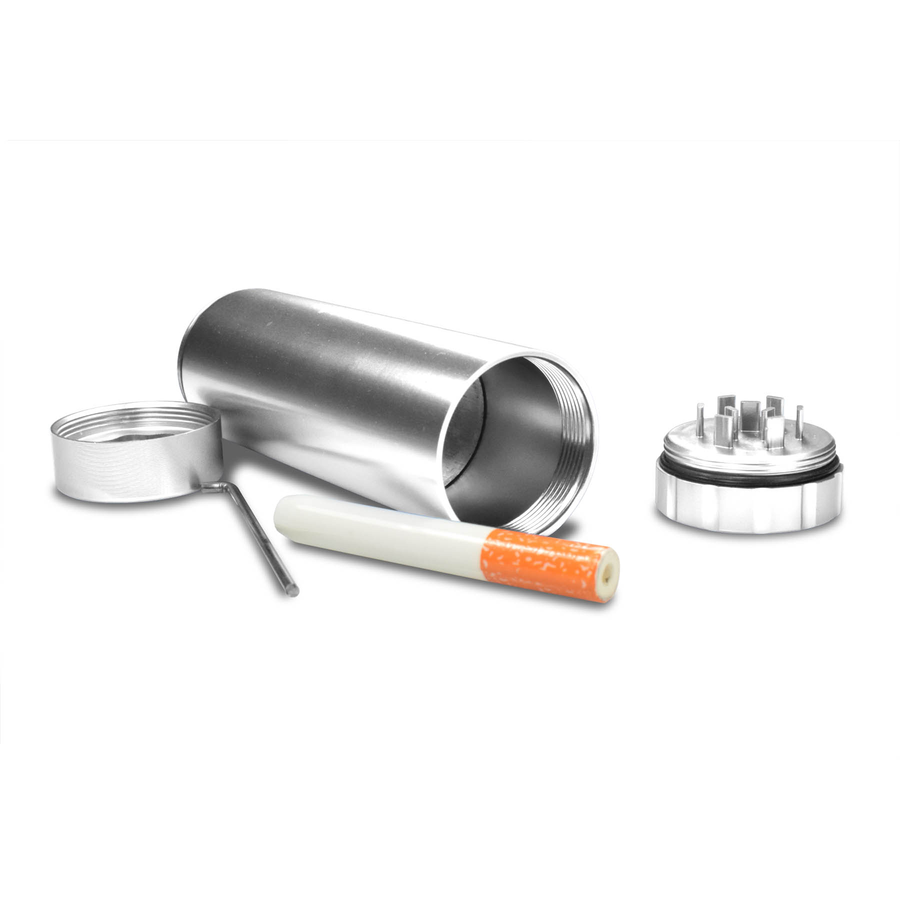 One handy container that neatly organize all of your wares. Made of aircraft aluminum for durability and design. There's a storage for lighter (not included), a handy ceramic pipe with cleaner, a mini-grinder, and ample storage for your herbs and spices. Both ends of the container is sealed with silicone gasket so no funny smell escapes the storage chambers. One single container – you're good to go!